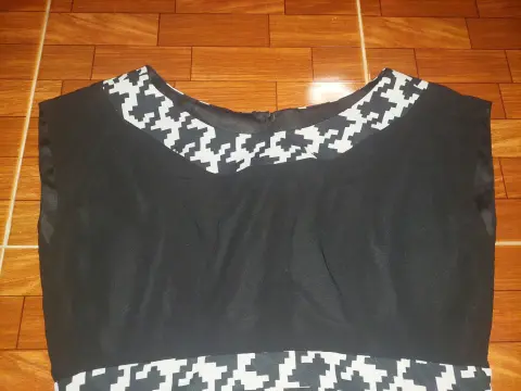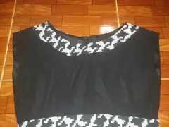 Vestido largo, cuello redondo, sin mangas, cierre en la espalda, con fondo negro, tela de gasa. TALLA GRANDE
