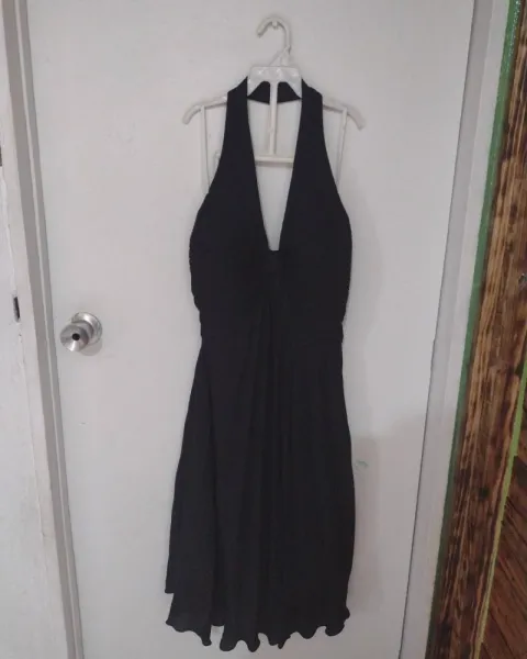 Es un hermoso vestido formal para fiesta de noche o de día queda muy bien a una talle M nunca se usó está nuevecito muy cómodo no se transparenta la te la es muy fresca se amolda super bien para resaltar esas curvas.