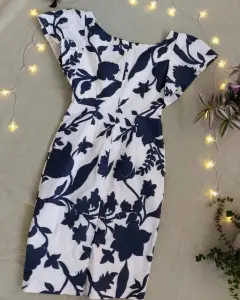 Vestido formal floreado. Hermosos vestido blanco con flores azulesLa tela es súper hermosa, el vestido tiene forro queda a la altura de la rodilla