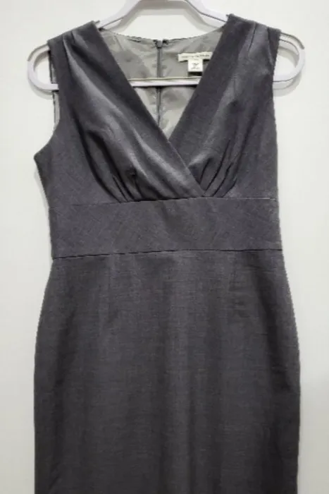 Vestido gris marca Banana RepublicSin manga, escote en V y ceñido en la cinturaViene forrado todo por dentroCierre en la espaldaTalla 6. Medidas aproximadas: 43cm de axila a axila,40cm de cintura, 92cm de largo desde el hombro.