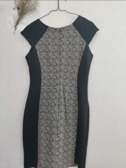 Bellísimo vestido formal, luce muy bello y estiliza la figura por el tipo de corte.Talla 6, es como una talla M (revisa tus medidas)Con strech.Tela 74% rayón y poliéster.Completamente NUEVO, solo que ya no tiene la etiqueta.De axila a axila: 43 cm.Largo: 83 cmSin detalles y en perfecto estado.