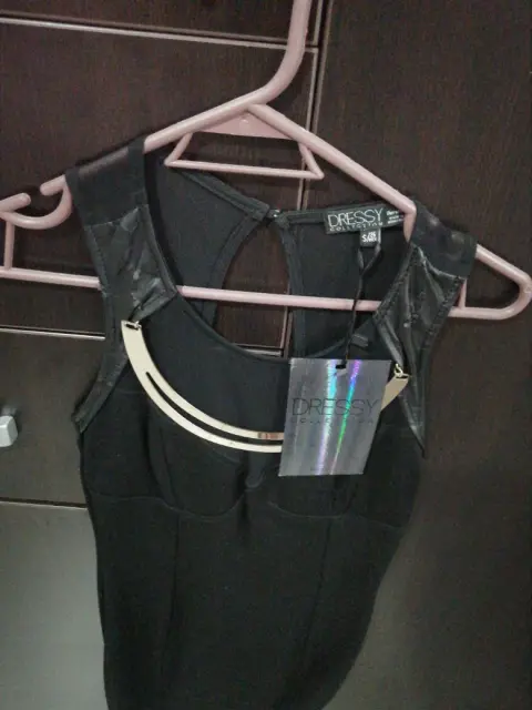 Vestido formal negro. Vestido formal negro de la marca berskha en talla S seminuevo, solo tiene en los apartados de polipiel un poco maltratado pero todo lo demás esta en excelentes condiciones.