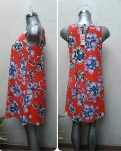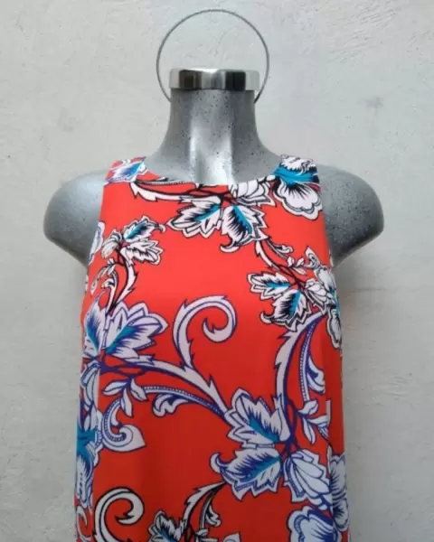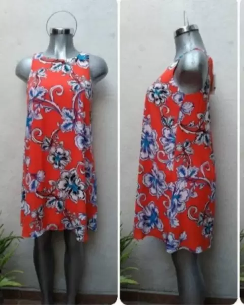 Vestido fresco. Divino vestido anaranjado con estampado floral tipo tunica en talla S nuevo con etiquetas con forro mismo que el de la foto de referencia sin detalles MEDIDAS ziza a ziza 46cm largo 90cm