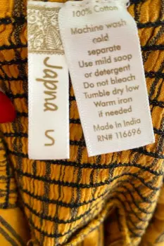 Bonito vestido holgado, con tirantes ajustables, botones y bolsitas. La tela es algodón. No tiene detalles de desgaste.