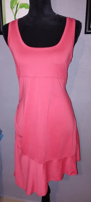 Bonito vestido color coral.Talla MDetalles lindos .Drapeado lateral.Escote en espalda.Asimétrico.Muy fresco para el calor.