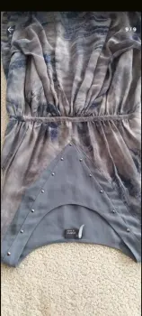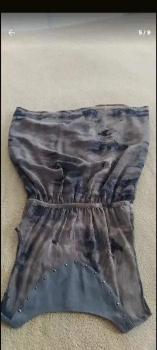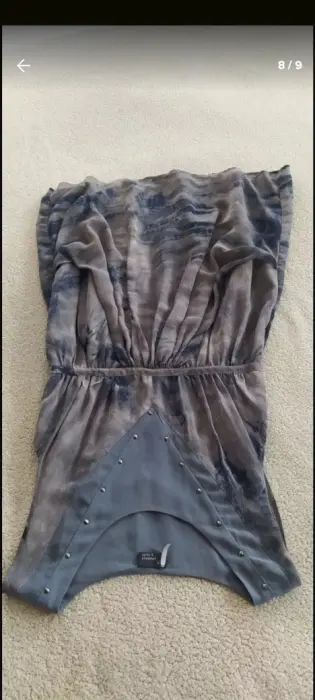 Gracias por visitar nuestra tienda en líneaEn esta ocasión te traemos:TALLA: sMARCA: SPARKLE&FADECOLOR: GRISSTRECH: POKOMADE IN : chinaMATERIAL: poliéster gasaMEDIDASHOMBRO: 35 cm AXILA: 44 cm CINTURA: 34 cm CADERA: es suelto LARGO: 85 cm desde el hombro Las medidas son de lado a lado