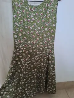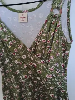 Vestido nuevo floral color verde, con tela de algodón muy suave y fresco, talla mediana aunque la etiqueta dice Grande realmente es mediano
