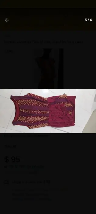 Gracias por vicitar nuestra tienda en líneaEn esta ocasión te traemos:TALLA: chMARCA: Mariana lunaCOLOR: vinoSTRECH: noMADE IN : ?MATERIAL: poliéster y gasaMEDIDASHOMBRO:AXILA: 57 cm CINTURA: 42 cm CADERA: 54 cm LARGO: 103 cm desde el hombroLas medidas son de lado a lado