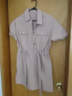 Vestido gabardina. Cortito, color palo de rosa, Super fresco, se ve genial con tenis o sandalias