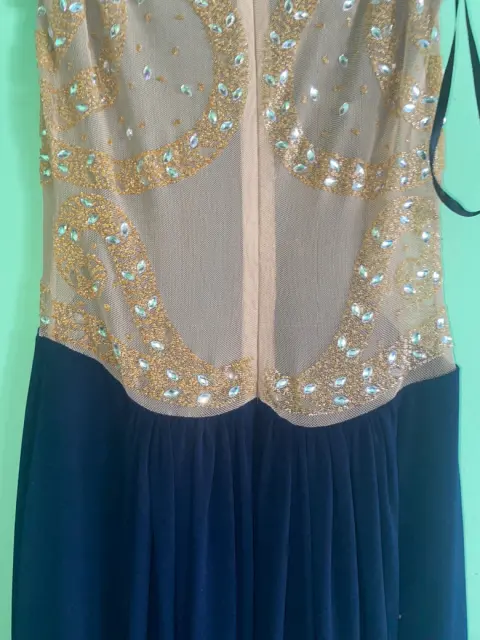 Bonito vestido largo de gala, trae pedrería atrás y encaje color nude que hace ver como si solo fuese pedrería atrás al tener puesto el vestido, es de boutique mexicana dedicada al diseño😍