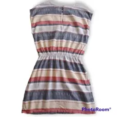 Vestido Gap t M. Vestido GAP t M americano colores en linea horizontal azul beige rojo gris azul cielo resorte en cintura 100% algodón cuello redondo botón trasero 53cm axila a axila 92cm largo aproximadamente tela ligera y fresca.