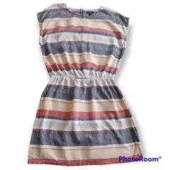 Vestido GAP t M americano colores en linea horizontal azul beige rojo gris azul cielo resorte en cintura 100% algodón cuello redondo botón trasero 53cm axila a axila 92cm largo aproximadamente tela ligera y fresca.