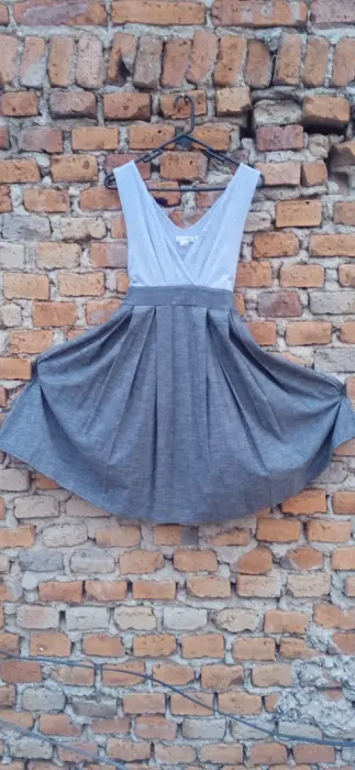Hermoso vestido Gris sin mangas y ajustable de la parte de atrás. Escote en V.Talla mediana.Usado una vez, sin detalles, cómo nuevo!!!