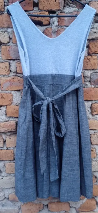 Vestido Gris Casual 👗. Hermoso vestido Gris sin mangas y ajustable de la parte de atrás. Escote en V.Talla mediana.Usado una vez, sin detalles, cómo nuevo!!!
