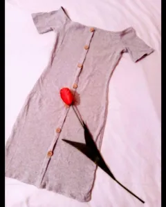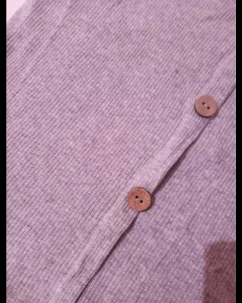 Vestido gris claro. Vestido a los hombros super lindo y casual, los botones son de madera, le queda sin problema a una talla s y m, sin detalles