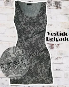 Vestido gris con negro. Tela delgadaTela estiraCon lindo detalle de piedreria