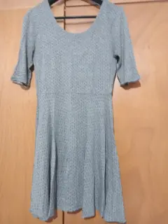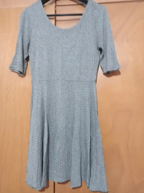 Vestido gris con puntos negros. Vestido gris con puntos negros, cuello un U, espalda con escote U, manga tres cuartos , falda semicircular .