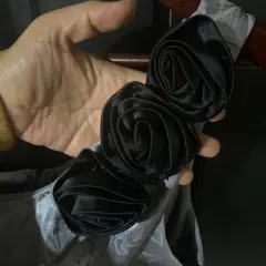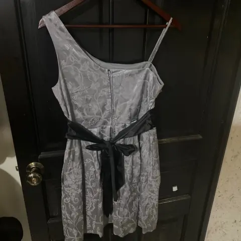 Hermoso vestido gris queda arriba de la rodilla, esta muy cómodo y elegante con rosas en satin en l parte frontal de lado izquierdo y cinta negra también de satin en la cintura