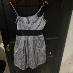 Vestido gris para fiesta, muy lindo.. Hermoso vestido gris queda arriba de la rodilla, esta muy cómodo y elegante con rosas en satin en l parte frontal de lado izquierdo y cinta negra también de satin en la cintura