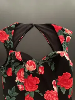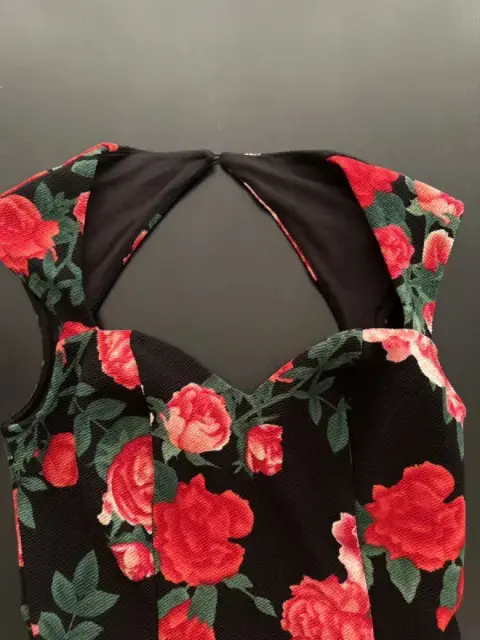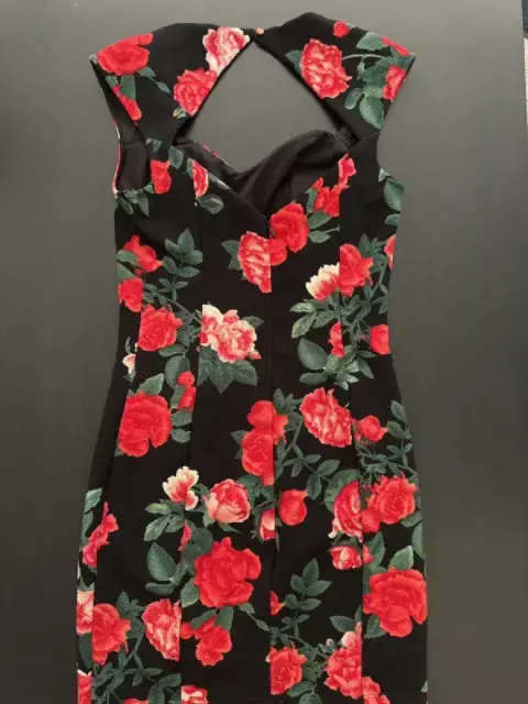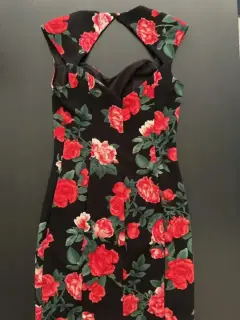 Vestido negro resalta la figura con flores rojas excelentes condicionesTalla 4Marca Guess