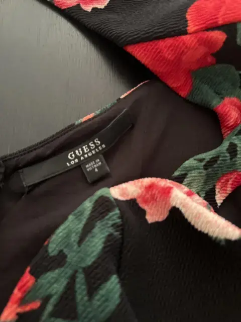 Vestido Guess Floral Negro. Vestido negro resalta la figura con flores rojas excelentes condicionesTalla 4Marca Guess