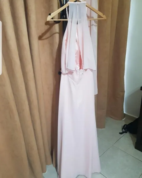 Luce divina con este hermoso vestido tipo halter tono rosa pálido. Súper cómodo. Ideal para eventos de día y un look sweet!
