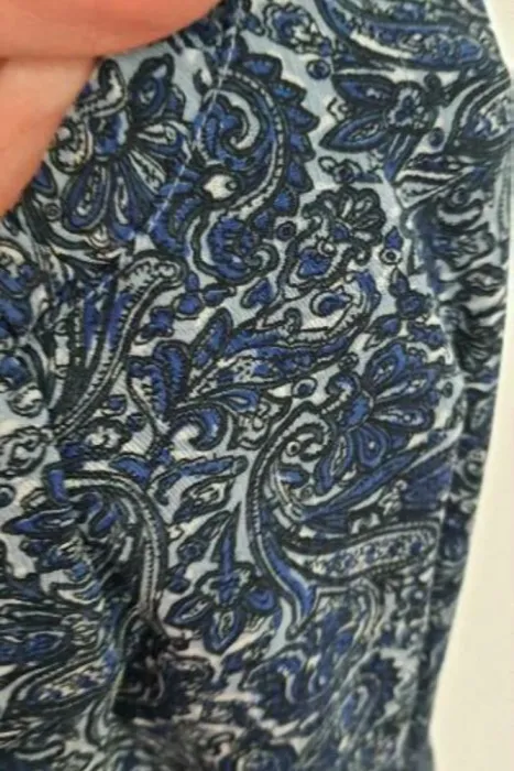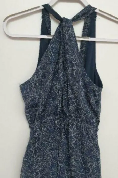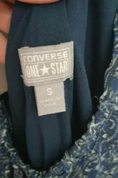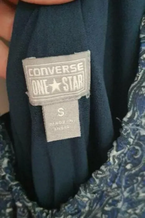Vestido casual marca Converse All Star.El estampado es paisley en tonos azules.La tela es transparente pero viene forradopor dentro.Tiene cuello redondo y corte halter, resorte en lacintura en la parte trasera y jareta para ajustar.Talla S. Medidas aproximadas: 42cm de axila a axila,66cm de largo a partir de axila.*TODAS MIS PRENDAS SE DESINFECTAN CON LYSOLLAVANDERIA PARA TU MAYOR TRANQUILIDAD*