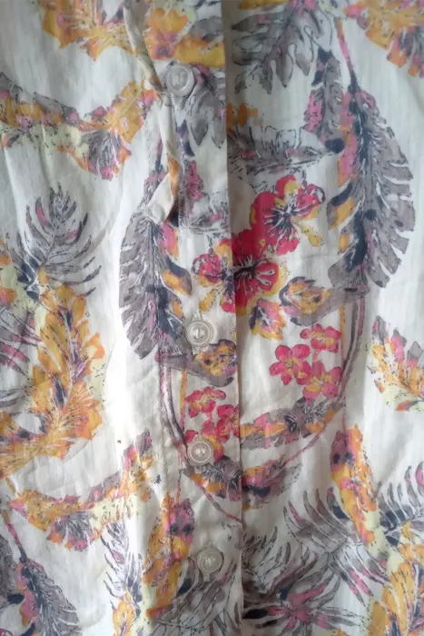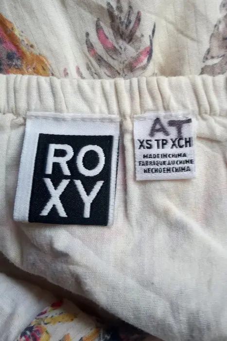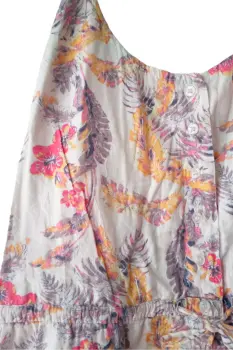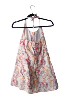 Vestido halter floral corto, con botones al frente, con fondo integrado y bosillos a los lados de la marca Roxy talla XS. Proviene de un hogar libre de humo de tabaco y mascotas.Medidassisa: 32 cm sin estirar, 39 cmscintura: 39 cmscadera: 49 cms100% algodón