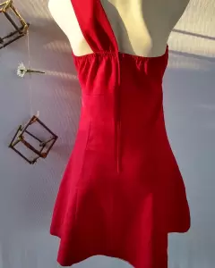 Vestido halter tipo jackard. Hermoso vestido rojo oscuro, el color no es tan vibrante como se ve en la foto, amolda al cuerpo, tela rígida. Vestido tipo Ulzzang a cuadros azul, hermoso diseño.