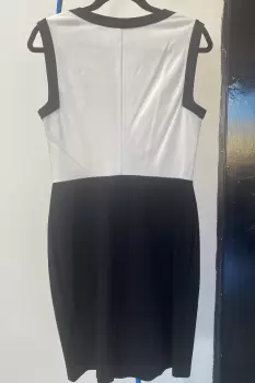 Vestido Hermoso de coctel. Vestido recto con bloques de color, el único detalle que tiene es que tiene unas costuras un poco flojas (anexo foto), la forma del vestido crea un efecto visual muy bonito al cuerpo. 61% Lyocell33% Poliamida 6% Elastano