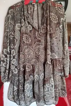 Vestido café, matca H&M, talla XS, queda a M o L, manga larga, tela ligera y transparente.