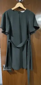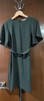 Lindisimo Vestido H&M color verde oscuro, manga corta, con cinta para anudar.