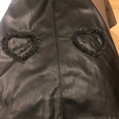 Vestido imitación piel negro. Vestido para niña talla 7, mayoral imitación piel negro con dos corazones al frente interior afelpado En excelentes condiciones