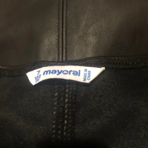 Vestido para niña talla 7, mayoral imitación piel negro con dos corazones al frente interior afelpado En excelentes condiciones