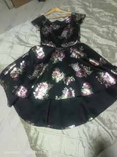 Vestido Irregular, de Tipo Circular, con Cuello Campesino, Estampado con Flores Metálicas.