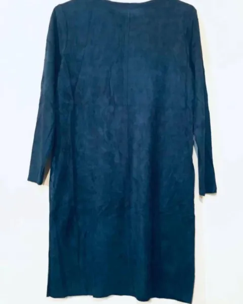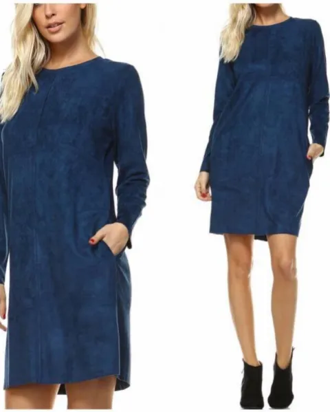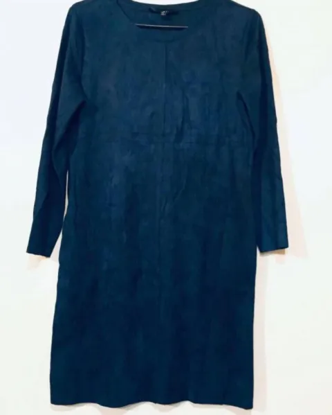 Vestido JOH APPAREL talla chica / small Color azul petróleo/ ultramarine Bolsillo a los costados En mangas y bastilla terminaciones sin costuras. Textura a piel de durazno. Tela poliéster, spandex Ajuste relajado 40cm hombro 47cm axila 87cm largo