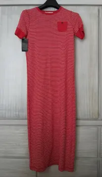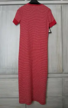 Vestido de algodón, rojo con rayas delgadas blancas, se ajusta al cuerpo, muy cómodo, se lleva perfectamente con tenis, flats, sandalias, etc.