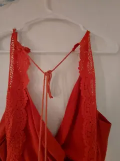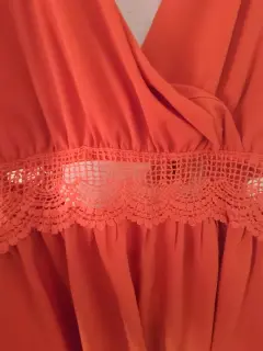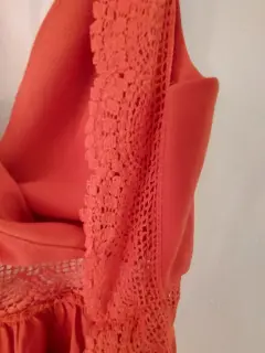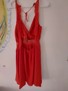 Vestido juvenil naranja. Vestido juvenil, olgado, scotado de la espalda, escote en v al frente, transparencia en la cintura, cómodo y fresco