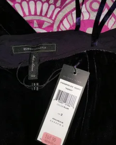 Vestido Lápiz - Bcbg "Kerry". Vestido de Coctel 3/4, A los hombros color morado, Tela terciopelo, con apertura en la parte de atrás, y con cierre, Medidas: axila a axila : 44 cmsCintura total circunferencia : 64 cmsCadera Total : 96 cmsLargo medida tomada a la altura inicio del busto :90 cms