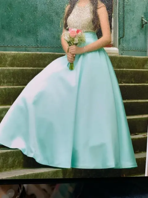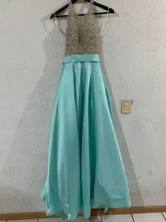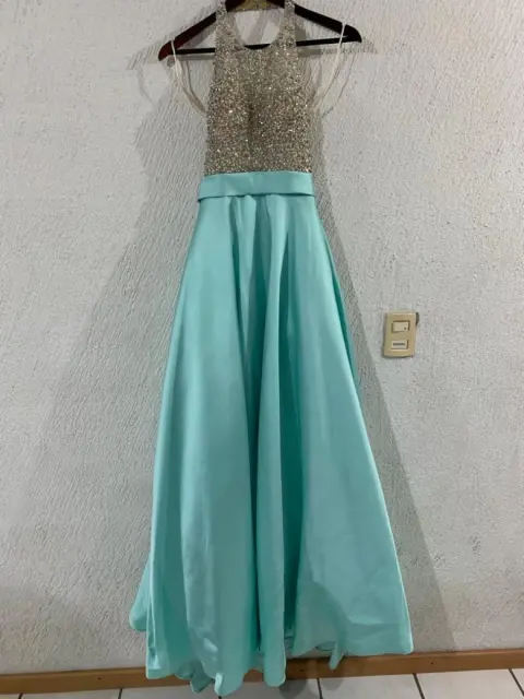 Vestido largo. Lindo vestido para fiesta o XV años, color verde menta talla 6 , puesto solo una vez , trae su falda de creolina