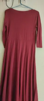 Vestido largo. Vestido largo con manga larga, cuello redondo, y en linea A llega abajo de las pantorrillas, es ideal para una salida de compras, rojo color vino