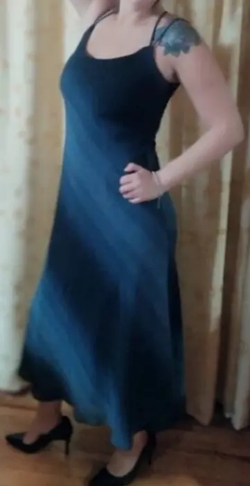 Vestido largo con tirantes y espalda descubierta con forro color gris con negro talla 9