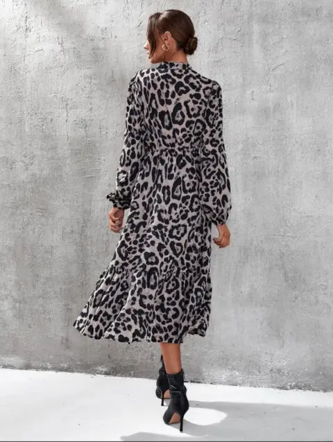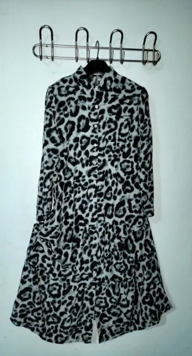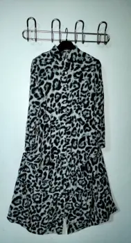 Vestido animal print largo de tela delgada con botón en mangas para poder arremangar y cinto para ajuste de cintura bolsita a un costado del pecho funcional no trasparenta talla M/L tal cual la foto ilustrativa que subí de como luciría puesto. Super mega hermoso 😍