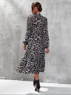 Vestido largo animal print. Vestido animal print largo de tela delgada con botón en mangas para poder arremangar y cinto para ajuste de cintura bolsita a un costado del pecho funcional no trasparenta talla M/L tal cual la foto ilustrativa que subí de como luciría puesto. Super mega hermoso 😍
