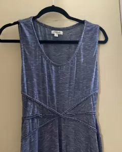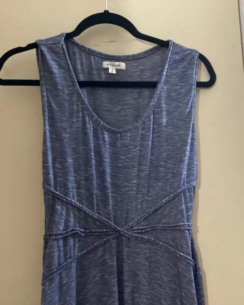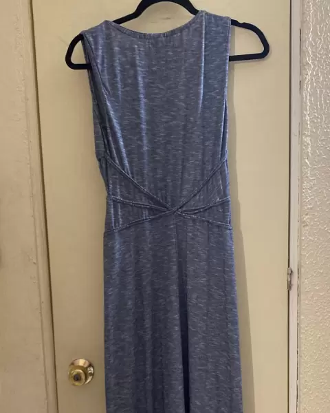 Vestido largo color denim, tela estira, da bonita forma, talla S