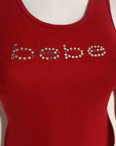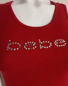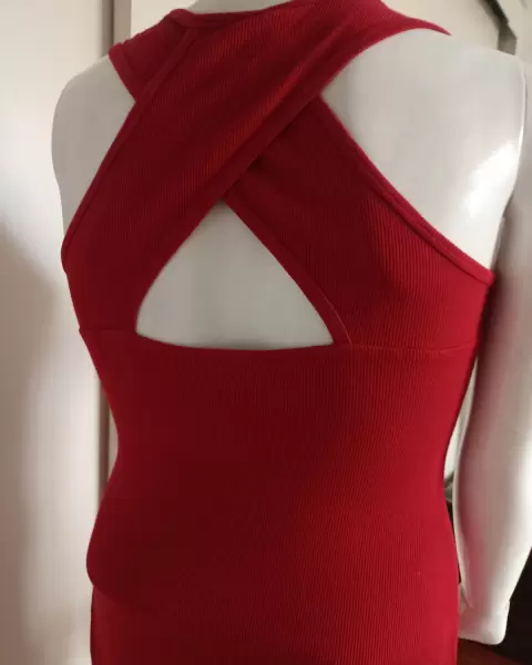 Vestido mediano marca bebe, algunas piedritas están incompletas, es largo color rojo quemado