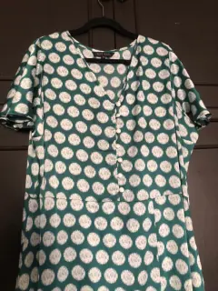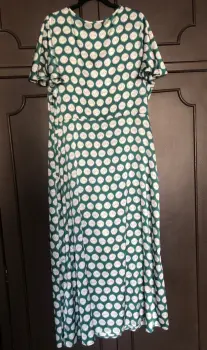 Precioso vestido largo de tela satinada con botones tipo perla al frente, la tela es muy suave y ligera, tiene abertura al frente en la parte baja que llega un poco arriba de la rodilla. Medidas de hombro a hombro 50cm, de axila a axila 65 cm, cintura 56cm, largo vestido 145cm. Viene muy amplio y no tiene ningún detalle, solo se uso para un evento.