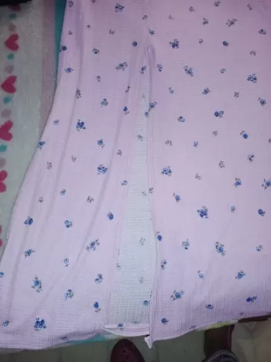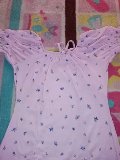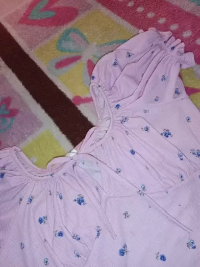 Vestido color rosa con florecitas azules, cuenta con resorte en los hombros y un cordon de adorno, el vestido se ajusta al cuerpo y tiene una abertura en la pierna, la tela no se transparenta par nada, es un vestido muy bonito, como y fresco ademas de que solo tienen una puesta de unas cuantas horas, en las fotos muestro como se ve