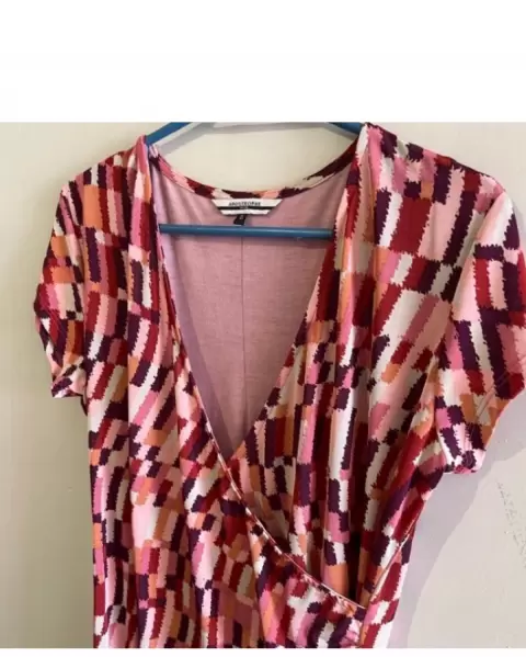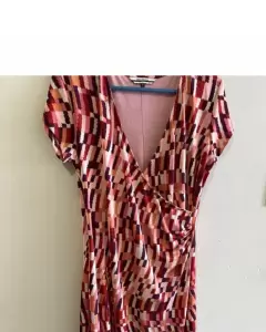 Vestido ligero con escote , tonos ladrillo, a estrenar sin detalle , talla L, largo 102, hombros 40, cuenta con forro , poliéster y elastano , marca Apostrophe