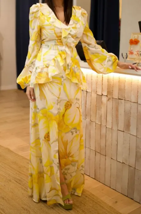 Vestido largo con estampado de tulipanes amarillo